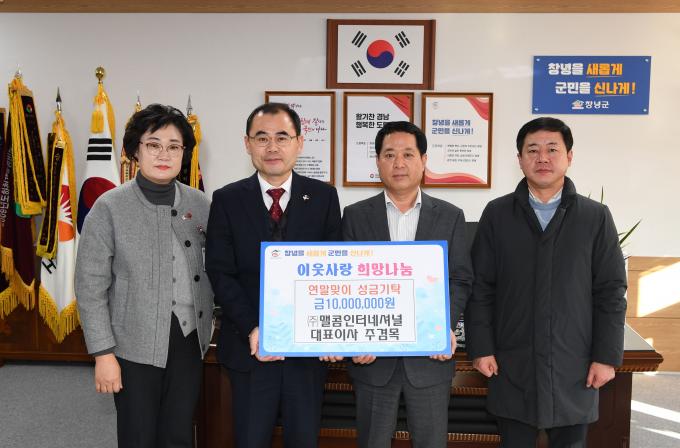창녕군 향토기업인 ㈜맬콤인터네셔널 임원들이 27일 군청을 찾아 성금 1000만 원을 기탁했다.