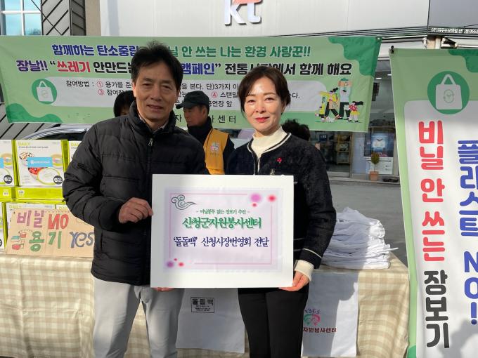캠페인에서는 비닐봉지 없는 장보기를 적극 홍보하고 '돌돌백' 200여 개를 산청읍시장번영회(회장 허태주)에 전달했다.