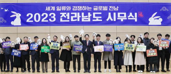 김 지사 "일념통천(一念通天)의 자세로 일하겠다" 김영록 전라남도지사가 2023년 새해를 '세계와 경쟁하는 전남 대도약' 원년으로 삼아 전남이 기회와 희망의 땅으로 떠오르도록 하겠다고 밝혔다.