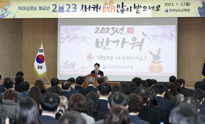 전남 학생이 꿈 펼치는 환경 조성해야" 김대중 전남교육감이 "2023년 새해는 교육가족에서 약속한 전남교육 대전환 시작을 알리는 원년이다"고 말했다.