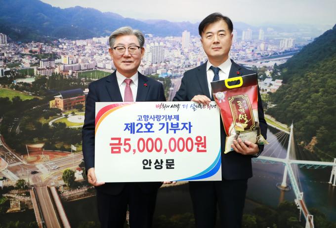 2호 기부자인 ㈜더백산 안상문 대표는 백산 안희제 선생의 후손으로, 부산에서 선박부품 제조업을 하는 의령 출신의 성공한 사업가이다. 이웃돕기 성금 기탁 등 다양한 자선사업에도 전념하는 자랑스러운 의령군 향우로 명성이 자자하다.