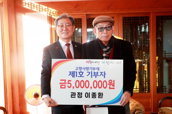 의령군은 고향사랑기부제 시행 첫날인 1일 '1조 기부왕'으로 불리며 '아시아 최대 장학재단'을 운영하는 관정 이종환 회장이, 2일에는 백산 안희제 선생 후손인 (주)더백산 안상문 대표가 고향 사랑의 마음을 전해 왔다고 밝혔다.