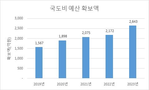 2023년 국·도비는 2019년 민선7기 최초 확보액 1567억 원 대비 1076억 원이나 늘어난 것이다. 전년 2022년 대비 471억 원이 증가, 증가폭 측면에서도 역대 최대 규모를 경신했다.