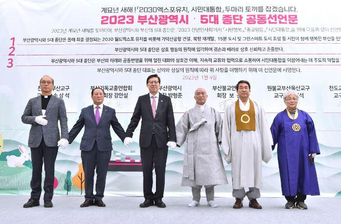 박형준 시장과 5대 종단 대표자들은 이날 행사에서 공동선언문을 발표하며 시정 주요사업에 대한 협력과 부산시와 5대 종단 간 상호 존중과 화합, 시민 대통합을 위한 주도적 역할 등을 약속한다.