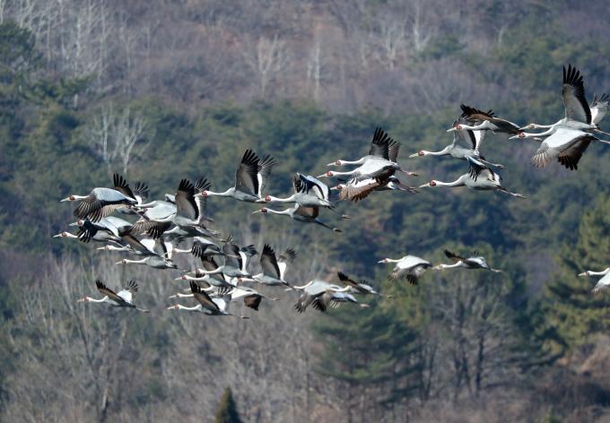 장수와 행운을 불러오는 길조로 인식되고 있는 두루미(학), 그중 세계에 약 1만 마리가량 남아있는 국제적 멸종위기 조류인 재두루미 떼가 의령군에 출몰했다.