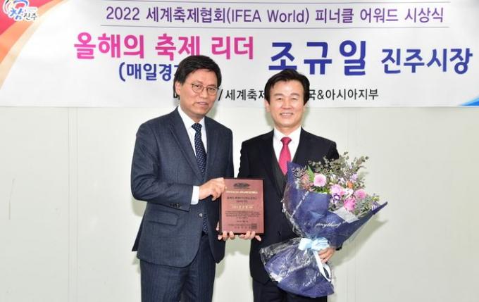 8일 진주시에 따르면 조규일 시장은 남강유등축제의 지역축제 세계화를 위해 역사적 사실에 생명력을 담아 부단한 노력을 기울인 공로를 높이 인정받았다.