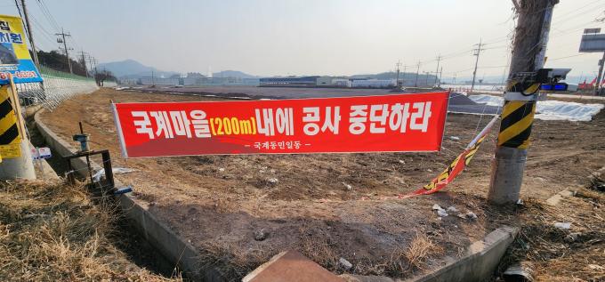 이근 주민들은 '숨막혀 못살것다! 억울해서 못살것다', '국계마을(200m)내에 공사를 중단하라'는 현수막을 내걸었다.