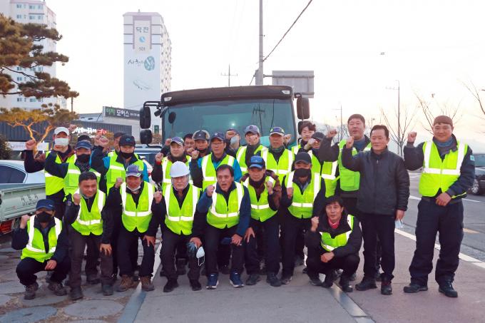 특히, 박 시장은 이날 생활 쓰레기 수거에 앞서 관내 한 식당에서 환경미화원들과 조찬 간담회 갖고, 고충과 애로사항 등에 대해 청취했다. 이 자리에서 환경미화원들은 피복비 인상을 요구했고, 박 시장은 흔쾌히 수락했다.