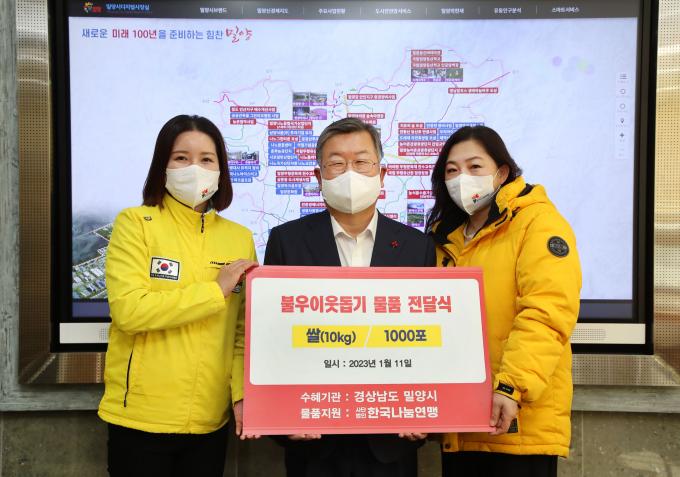 ㈜한진전력(대표 김재민)과 밀양식자재마트(대표 권순덕)도 11일 설 명절을 맞아 어려운 이웃들을 위해 사용해 달라며 밀양시에 현금을 기탁했다.