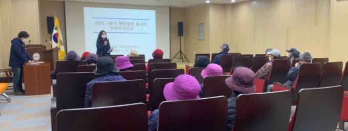 거창사건사업소(소장 김미정)는 지난 10일 거창사건추모공원 역사교육관 내 영상실에서 추모공원 관리와 국화 재배 일자리사업에 참여한 근로자 17명을 대상으로 안전보건교육을 실시했다.