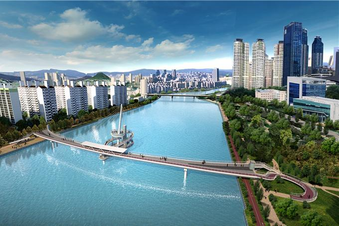 '수영강 휴먼브릿지'는 해운대구 영화의 전당과 수영구 주거지역을 연결하는 길이 214m 폭 7~18m의 자전거 이용이 가능한 보행교다. 지역업체인 성림종합건설과 거보건설이 시공을 맡아 2025년까지 준공을 목표로 추진 중인 사업이다.
