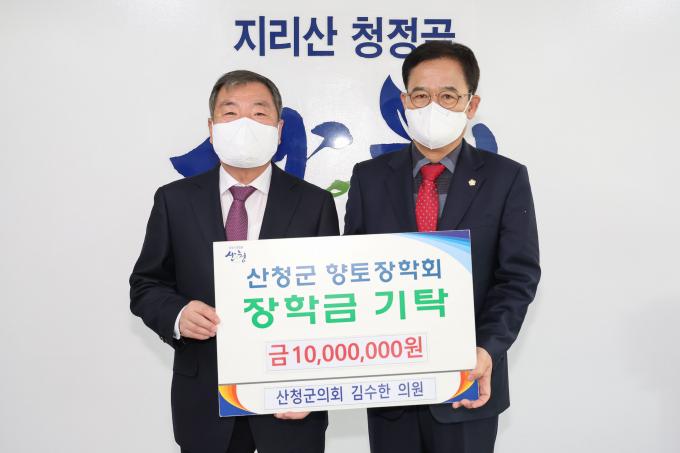 김수한 산청군의회 부의장은 11일 산청군청을 찾아 장학금 1000만 원을 기탁했다.