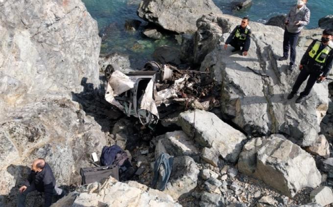 이 사고로 승용차가 해안 바위에 떨어지면서, 차 안에 타고 있던 남자 4명이 모두 숨졌다.