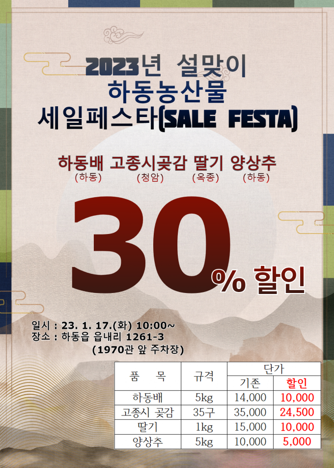 하동군은 이번 행사를 통해 농업인의 경영 안정화에 기여하고 소비자 물가 상승으로 어려움을 겪고 있는 군민에게 우수한 지역 농·특산물을 보다 싼 가격에 제공할 것으로 기대하고 있다.