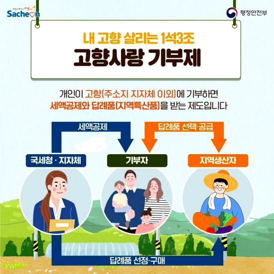 고향사랑기부제는 개인이 거주지 외의 희망하는 '고향' 지자체에 1인당 연간 500만원 이하의 일정 금액을 기부하면 세액공제와 함께 답례품을 받는 제도다.