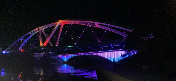 창원특례시는 설 연휴 창원을 찾는 귀성객과 관광객을 위해 21일부터 24일까지 나흘간 '콰이강의 다리' 미디어파사드 조명을 시범 점등한다고 18일 밝혔다.