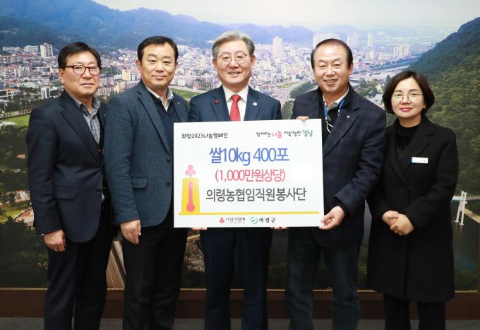 의령농협 임직원 봉사단은 17일 의령군청을 방문해 쌀 10㎏ 들이 400포(1000만 원 상당)를 기부했다. 이들은 이날 직접 경로당과 저소득계층 205가구를 가가호호 방문해 배달까지해 투철한 봉사정신을 보여줬다.