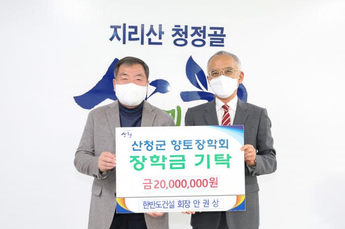한반도건설은 이번 장학금 기탁뿐만 신안면·생비량면·신등면 등 산청군 지역에 쌀을 꾸준히 기탁하는 등 지역인재 양성 및 이웃사랑 나눔 실천에 앞장서고 있다.