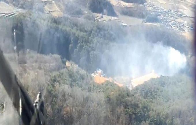 주민 신고를 받고 출동한 소방당국은 소방차 15대와 헬기 2대 등을 동원해 40여분 만에 큰 불길을 잡았다.