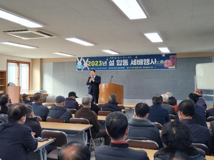 이날 행사에는 조근제 군수를 비롯해 도의원, 군의원, 관내 기관·단체장, 주민 등이 참석한 가운데 올 한해 어른들의 건강과 행복을 기원하며 합동 세배를 올리고 덕담을 나누며 훈훈한 시간을 보냈다.