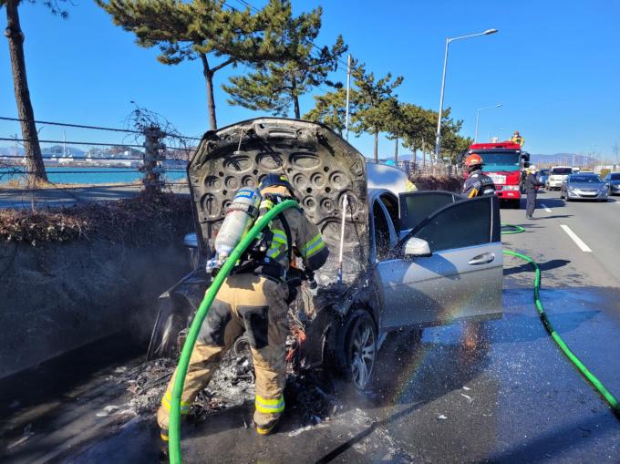 이 불은 벤츠(C200 2008년식) 승용차 엔진룸을 모두 태워 400만 원(소방서 추산) 상당의 재산피해를 내고 출동한 소방대에 의해 15분 만에 진화됐다.