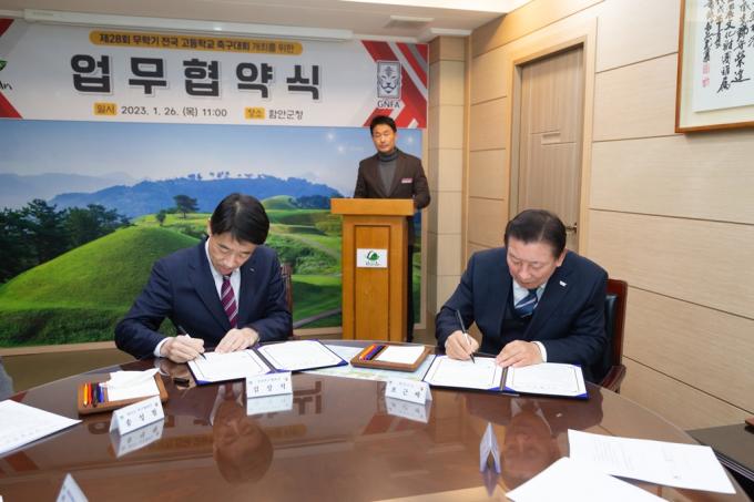 한편, 올해 개최하는 제28회 전국 무학기 고등학교 축구대회는 오는 5월 중 12일간 함안스포츠타운 축구장에서 전국의 40여 팀이 참가한 가운데 열릴 예정이다.