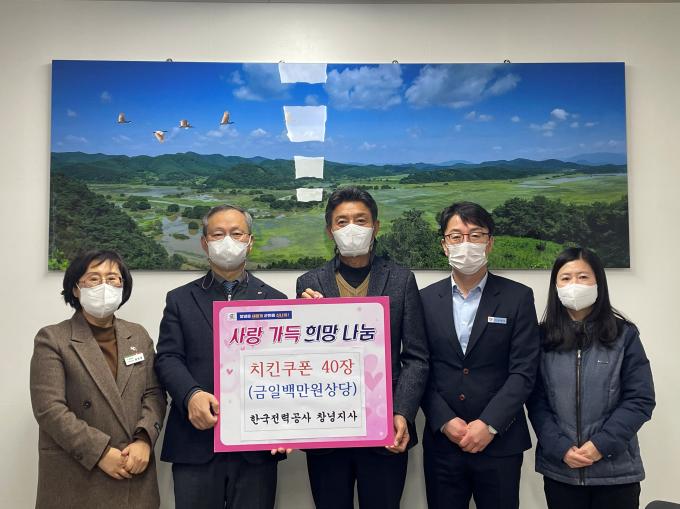 한국전력공사 창녕지사(황신규 지사장)는 26일 드림스타트 사례관리 아동들에게 100만 원 상당의 치킨쿠폰 40장을 기탁했다.