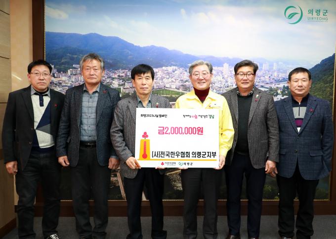 전국한우협회 의령군지부(지부장 손백현)는 27일 의령군을 방문해 불우이웃돕기 성금 200만 원을 기탁했다.