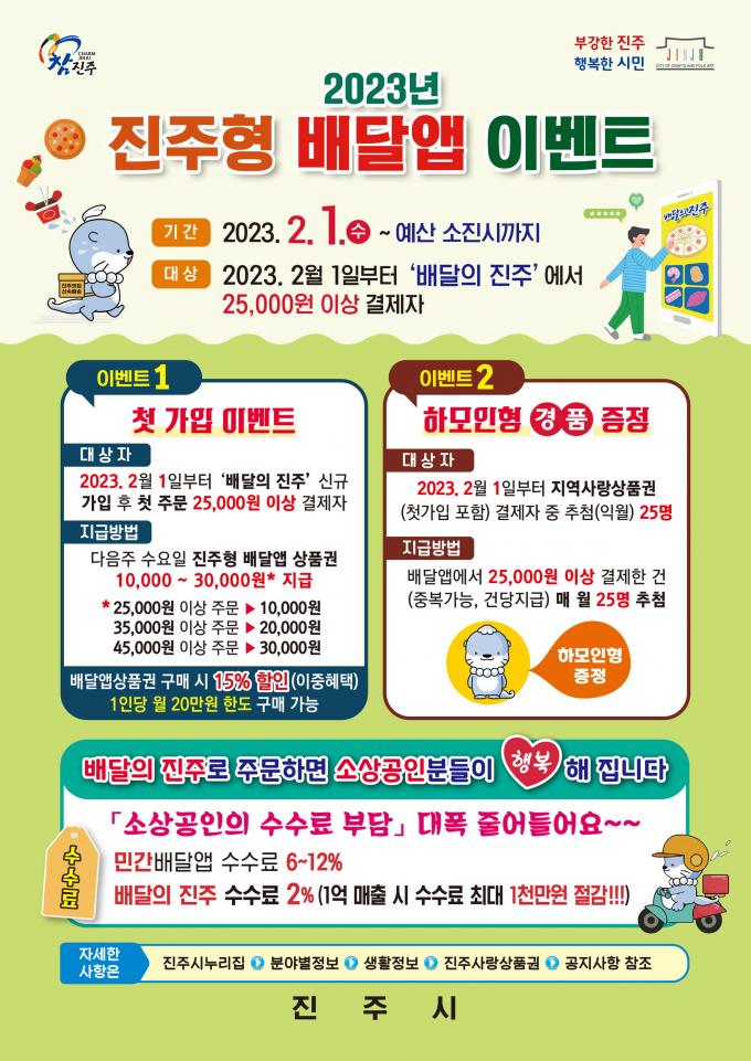 오는 2월 1일부터 예산 소진 시까지 진주형 배달앱 '배달의 진주' 이벤트도 개최한다.