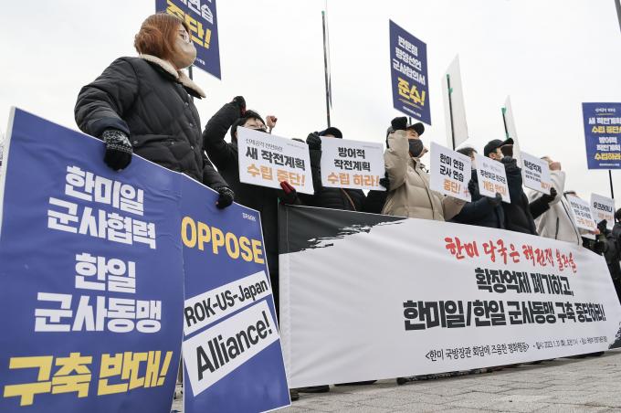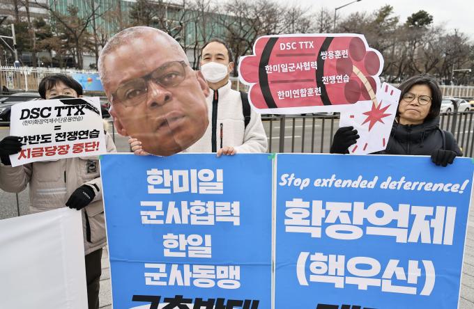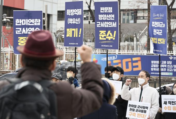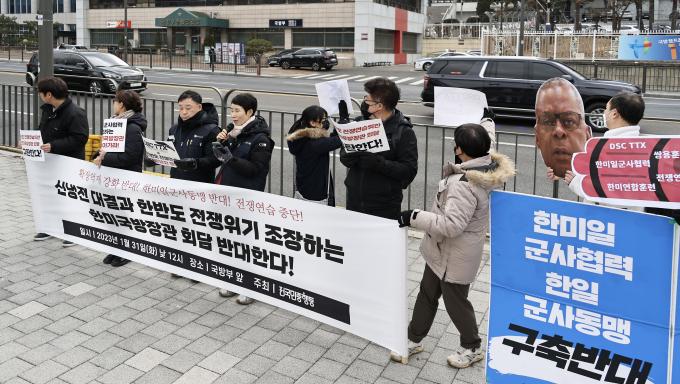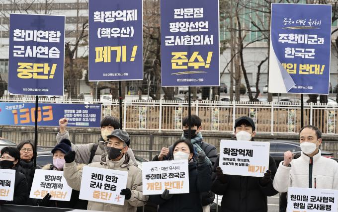 평화와통일을여는사람들(평통사)도 이날 기자회견을 열고 핵전쟁을 불러올 확장억제 정책을 폐기하고 한미일 한일 군사동맹 구축을 중단할 것과 대만 유사시 주한미군과 한국군 개입 반대를 촉구했다.