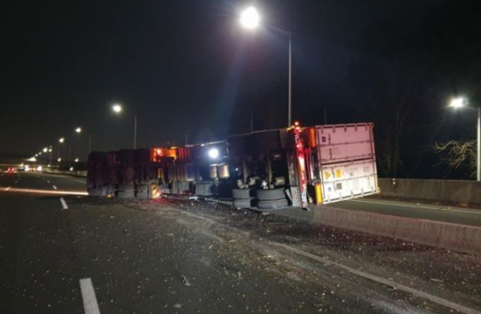 부산 강서 남해고속도로서 25톤 트레일러 전도…60대 운전사 부상