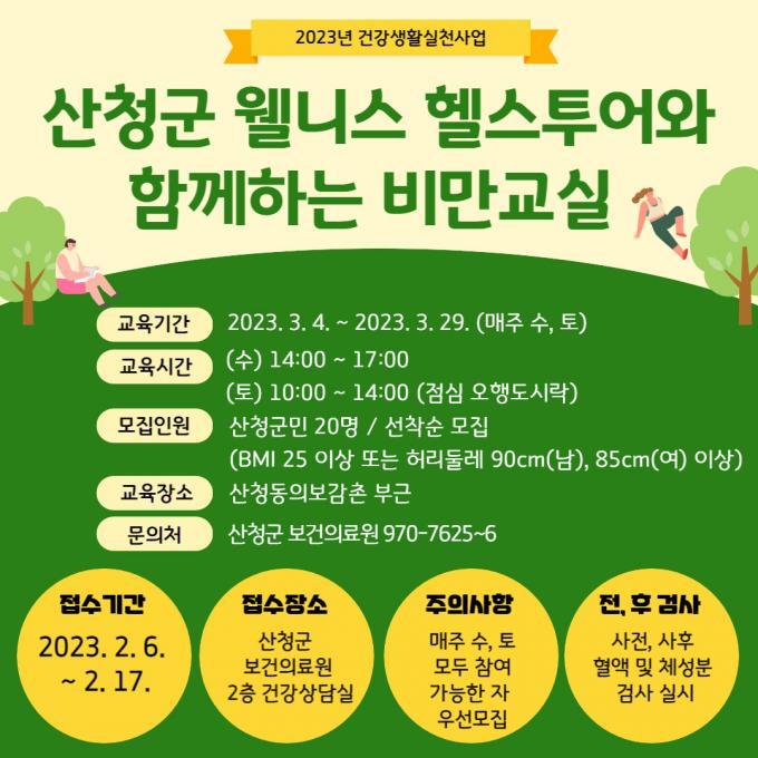 산청군은 '웰니스 헬스투어와 함께하는 비만교실'을 추진한다.