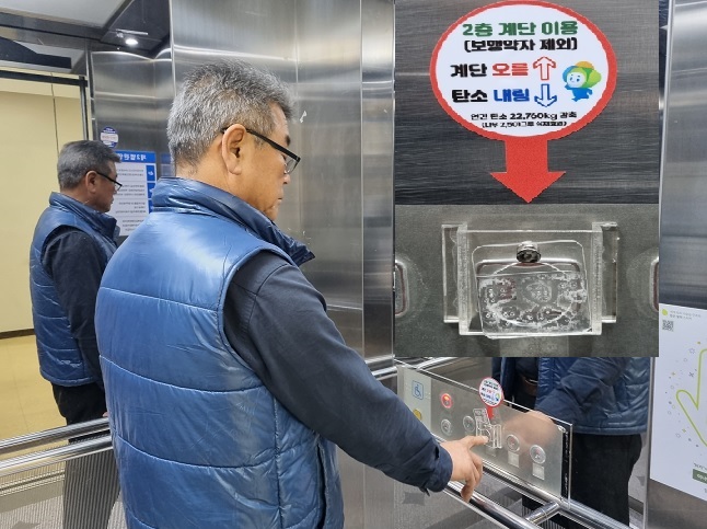 승강기 대신 계단을 이용하면 시청 기준 연간 22.8톤의 탄소 배출(소나무 2501그루 식재 효과)을 줄일 수 있으며, 시청 방문자도 함께 참여하면 더 많은 탄소 배출을 줄일 수 있을 것으로 예상된다.