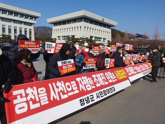 시민단체는 "지난해 6월 지방선거에서도 창녕군수 공천이 결정되기 전부터 후보가 결정돼 있다는 소문이 나돌면서 '사천' 의혹이 제기된 바 있다"며 "결국 후보자 매수 혐의로 당사자가 극단적 선택으로 하는 상황으로 귀결됐다"고 주장했다.