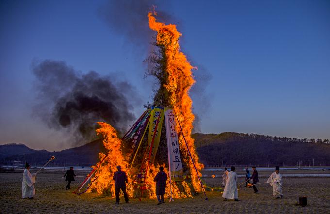 '달집 태우기'는 정월 대보름날 밤 달이 떠오를 때 생솔가지 등을 쌓아 올린 무더기에 불을 질러 태우며 노는 세시풍속이다. 달집이 활활 잘 타오르면 풍년이 들고 금세 꺼지면 흉년이 든다는 속설이 전해지고 있다.