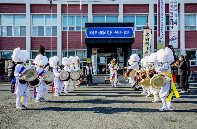 행사에 참여한 미타산 풍물패는 오전에 적중면사무소를 시작으로 농협과 면민들의 가정을 돌며, 꽹과리와 징, 장구, 북을 치면서 지신에게 고사를 지내고 한 해 동안의 안녕과 건강, 풍년을 기원했다.