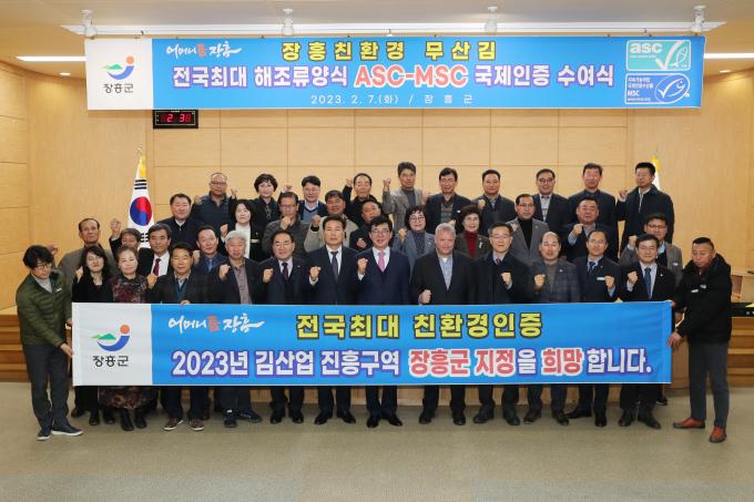7일 장흥군에 따르면 군청에서 열린 인증서 수여식에는 인증대행사인 컨트롤유니온 아시아태평양 총괄 책임자인 더크 테이허트가 참석해 어업인들에게 국제인증서를 전달했다.