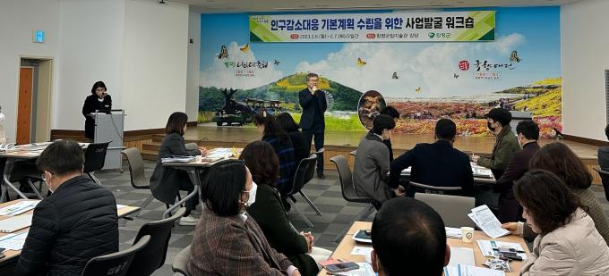 함평군은 6일부터 이틀 동안 주거, 교통, 복지·의료, 문화·관광, 경제 등 각 분야별 팀장 40여 명이 참석한 자리에서 인구감소대응 5개년 기본계획 수립을 위해 정부 인구정책에 대한 사례연구를 시작으로 부서별 사업 공유, 아이템 발굴, 분야별 역점사업을 논의했다.