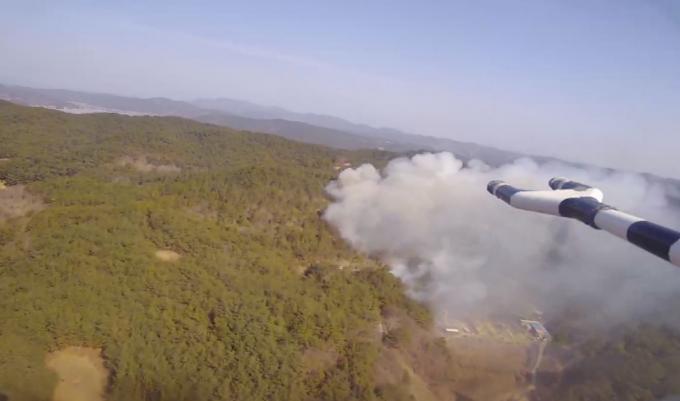 ▲ 8일 오후 진주시 수곡면 사곡리 산 101-1 일원에서 발생한 화재 현장 모습 [산림청 제공]