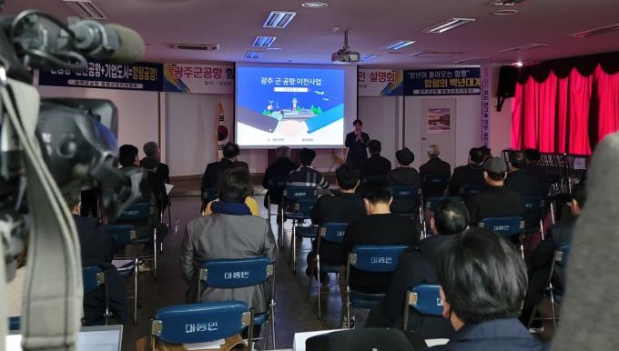 광주시와 국방부는 8일 함평 대동면사무소에서 특별법 제정을 추진하고 있는 광주 군공항 이전을 놓고 주민 설명회를 열었다.
