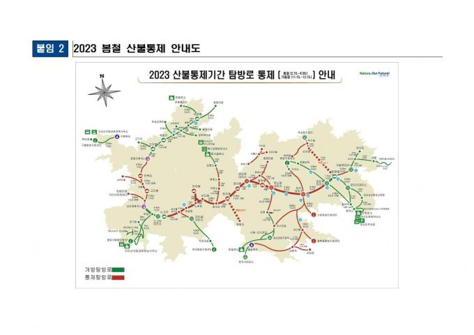 성경호 지리산국립공원경남사무소 재난안전과장은 "산불방지와 자연자원 보호를 위하여 반드시 지정된 개방 탐방로만 이용해 달라"고 당부했다.