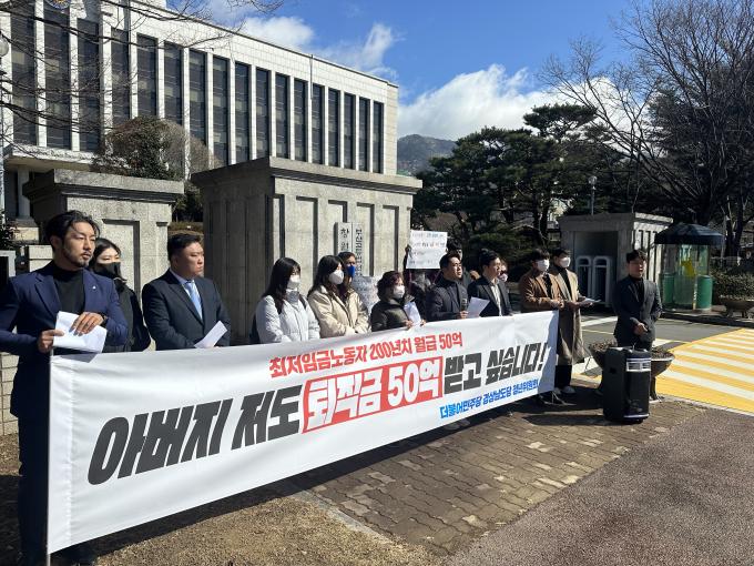 '아버지, 저도 퇴직금 50억 받고싶습니다'라는 펼침막을 들고 회견에 나선 청년들은 "어찌하면 청년 노동자들의 사망금 보다 50배나 많은 퇴직금을 받을 수 있는지, 검사 아버지를 두지 않은 청년들의 삶과 검사 아버지를 둔 청년들의 삶이 이렇게나 달라야 하는가"라고 목소리를 높였다.