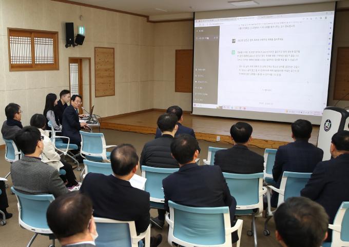 실과별 담당자가 강진에 홀로 사는 노인에 대한 복지 대책, 인구 증가 정책, 쌀 값 올릴 수 있는 방법, MZ 세대가 관광할 때 가장 중요하게 생각하는 요소 등의 질문을 하면 관련 리포트가 쏟아져 나왔고, 챗 GPT가 내놓은 답안이 올바른 정책인지, 실효성이 있는 답변인지 열띤 토론도 이어졌다.