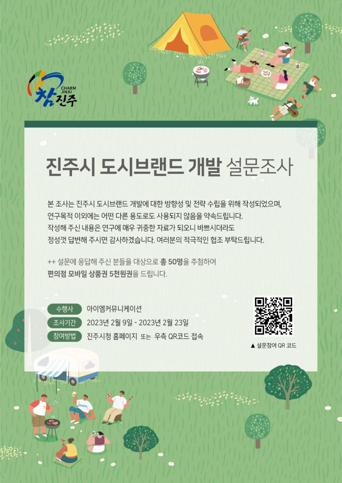 설문에는 지역, 나이, 성별에 관계없이 참여할 수 있다. 진주시 홈페이지 또는 QR코드 접속을 통해 참여 가능하다.
