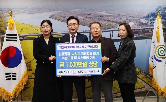 대한식품·광일식품도 나주 생산 먹거리 기부 나주시청 공직자와 지역 업체가 최근 지진으로 피해를 입은 튀르키예·시리아 난민 돕기에 나섰다.