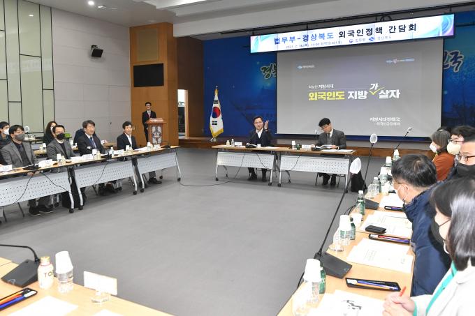 이날 간담회에는 법무부에서 추진 중인 '지역특화형 비자 시범사업' 등 지역기반 이민정책에 대한 설명과 경북도에서 구상 중인 '지역 맞춤형 외국인 정책(글로벌 신라방 프로젝트)' 발표가 있었다.