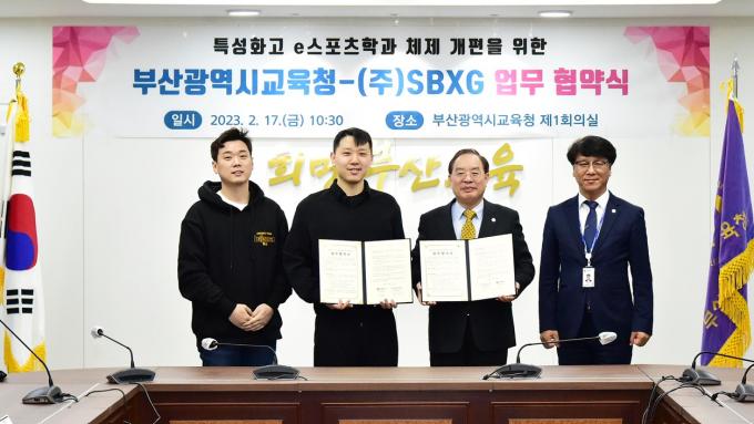 한편, SBXG(샌드박스)는 부산시와 협약을 맺은 전국 최초의 연고제 e-스포츠 구단으로, 전국 다수의 특성화고와 e스포츠 인재 양성을 위해 협력하고 있다.