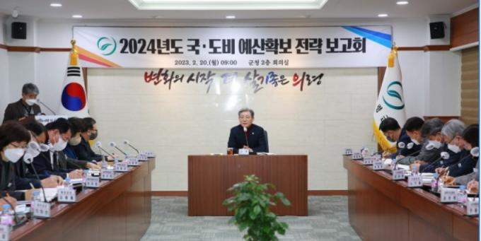 의령군은 20일 2층 군청 회의실에서 오태완 군수 주재로 '2024년 국·도비 예산확보 전략보고회'를 개최했다.