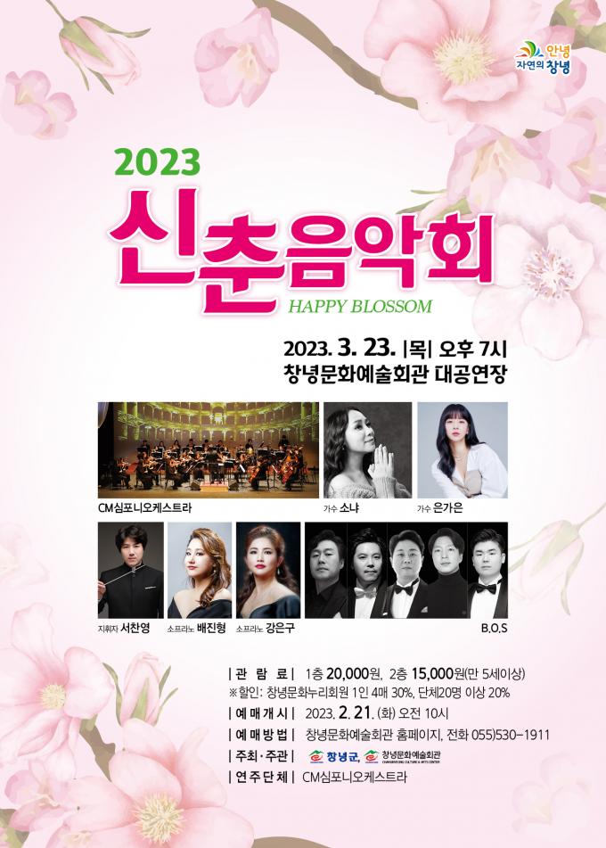 상반기 첫 공연은 오는 3월 23일 열리는 '2023 신춘음악회 해피 블라썸'이다. 가수 소냐·은가은, 성악가, 오케스트라와 함께 대중적인 클래식 장르의 곡을 연주한다.