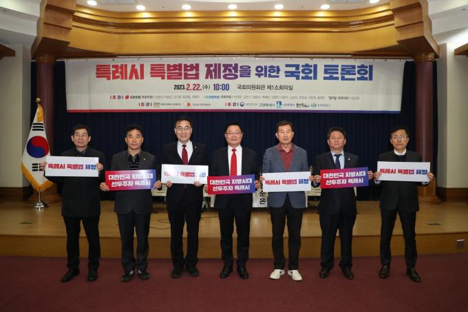 지난해 11월 창원에서 열린 대한민국특례시시장협의회 임시회의에서 특별법 제정 공론화가 필요하다는 데 의견을 모은 이들 지자체 단체장은 이날 한자리에 모여 조속한 법안 발의를 촉구했다.